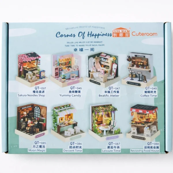 Create your own tiny world of charm and creativity with the Cuteroom “Corners of Happiness” Miniature DIY Dollhouse Kit. This beautifully designed craft set allows you to assemble a detailed miniature room or shop, complete with furniture, accessories, décor pieces, and realistic finishing touches.