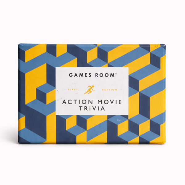 Bring explosive excitement to your game night with Games Room™ Action Movie Trivia – First Edition. Wrapped in a bold, modern geometric design, this premium trivia game is dedicated entirely to the high-octane world of action movies. From legendary one-liners and iconic heroes to unforgettable stunts and blockbuster moments, the game challenges players to prove who truly rules the action genre.