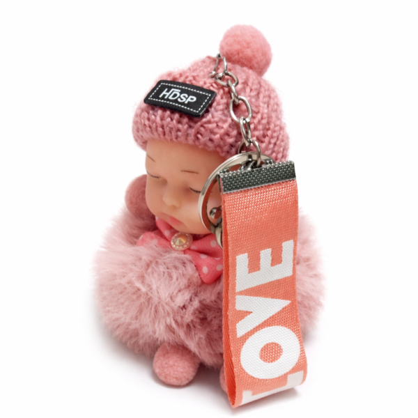 An adorable plush baby doll keychain with a soft furry body and cute pink details. Perfect for decorating backpacks, bags, or keys, and a lovely little companion kids will love to carry everywhere.