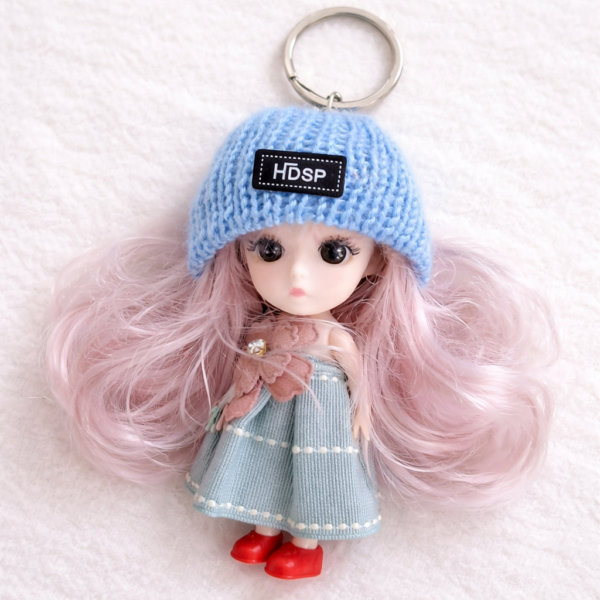 Make your everyday essentials more fun with this charming doll keychain. Designed with soft flowing pastel hair, a stylish knitted hat, and a sweet little outfit, this mini doll instantly adds personality to your keys, backpack, purse, or school bag.