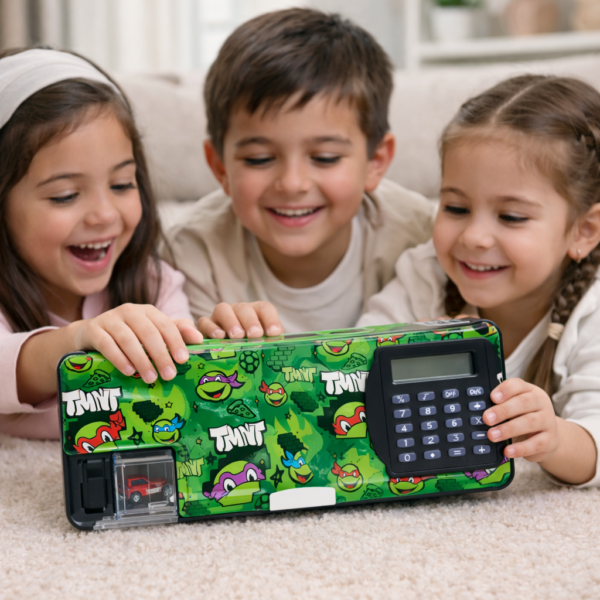 TMNT Lockable Pencil Box with Calculator – Fun, secure, and perfect for school! Features a digital keypad lock, built-in calculator, and vibrant Teenage Mutant Ninja Turtles design.