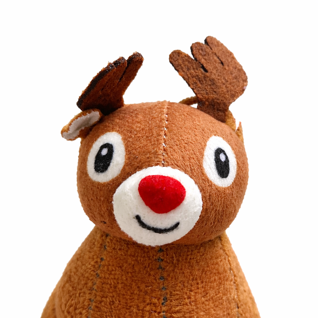 With its friendly face, bright red nose, and sweet expression, this reindeer quickly becomes a favorite companion for playtime, storytelling, and quiet bedtime routines. It’s lightweight and safe for young children, making it ideal for both indoor play and relaxing moments at home.