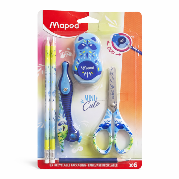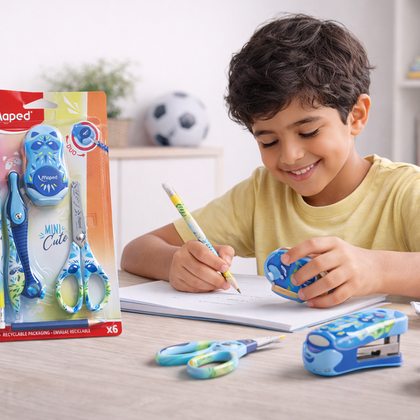 A colorful and fun stationery set from Maped, designed for kids. The Mini Cute set includes essential school tools in one pack, making learning and creativity enjoyable and easy.